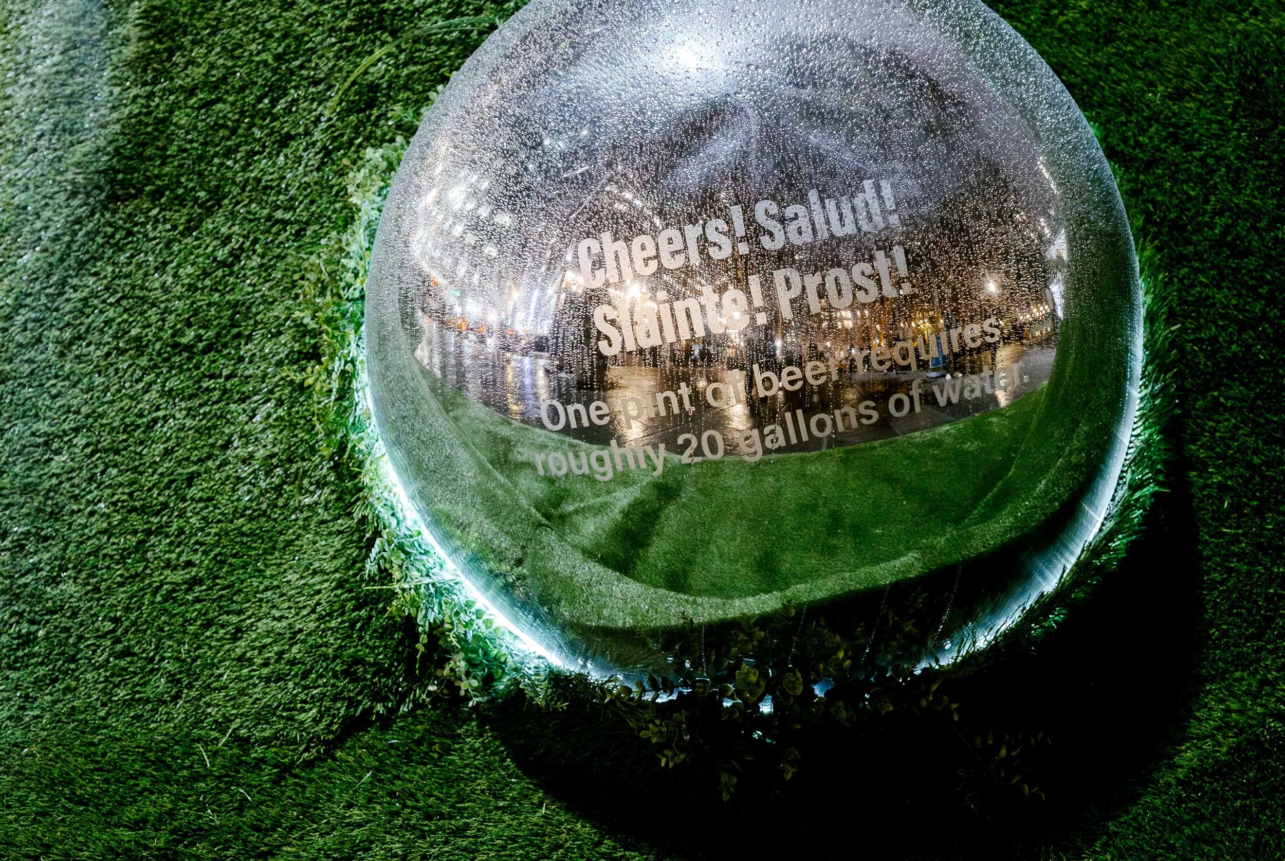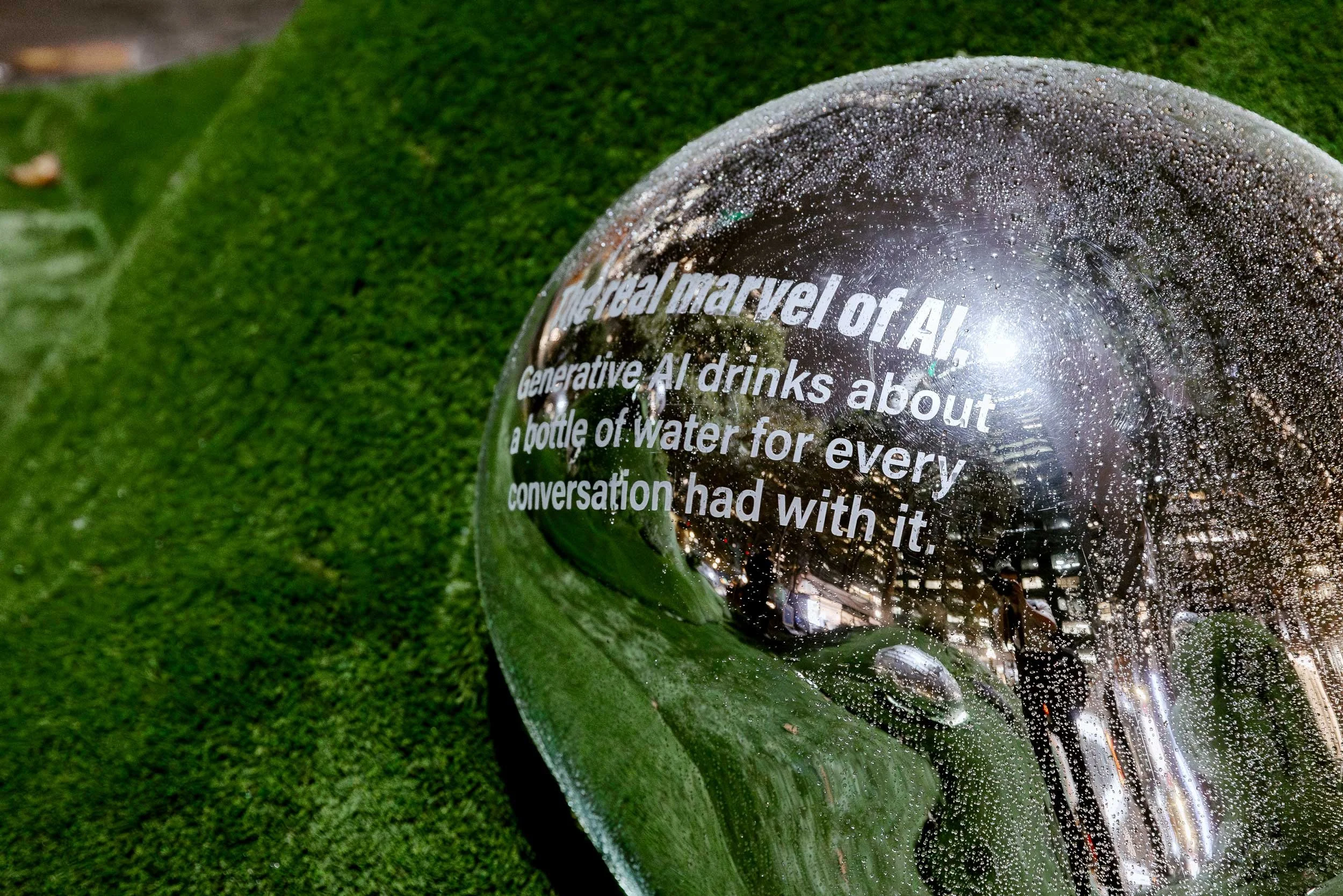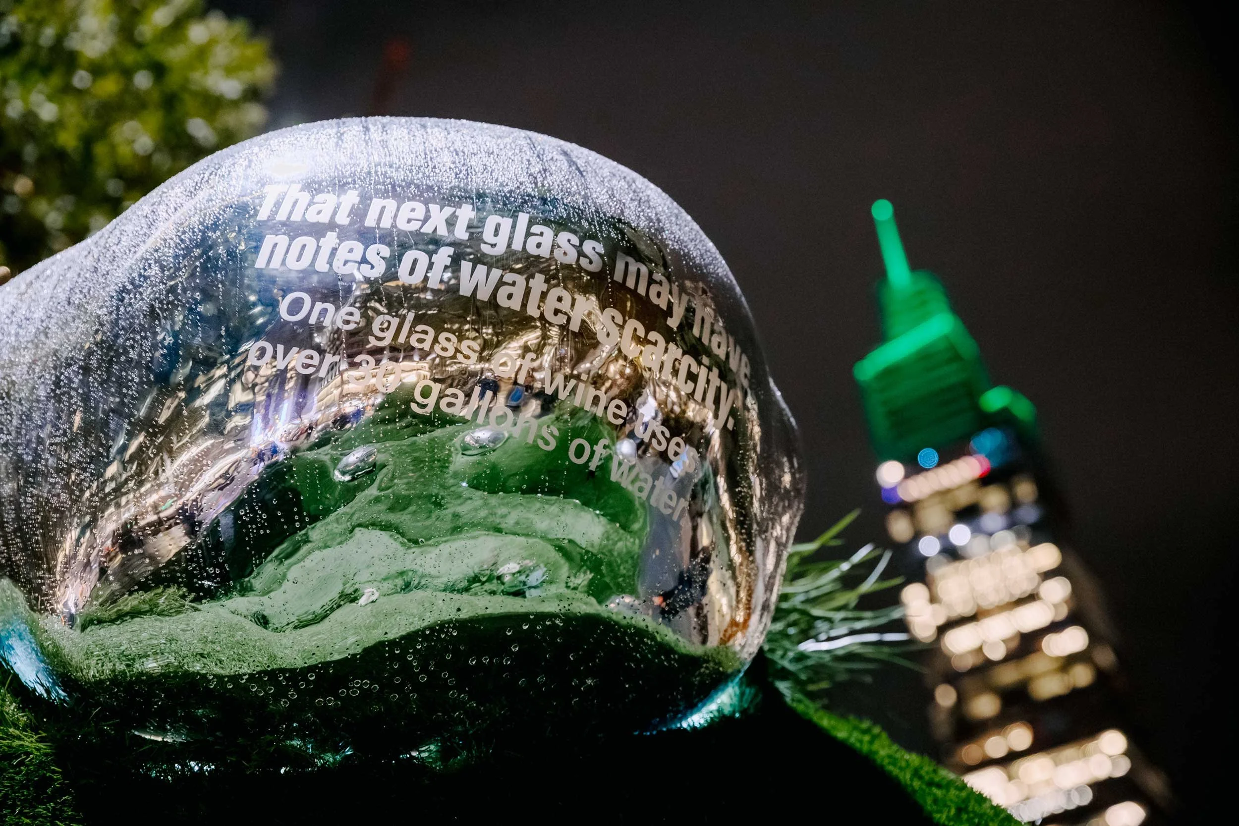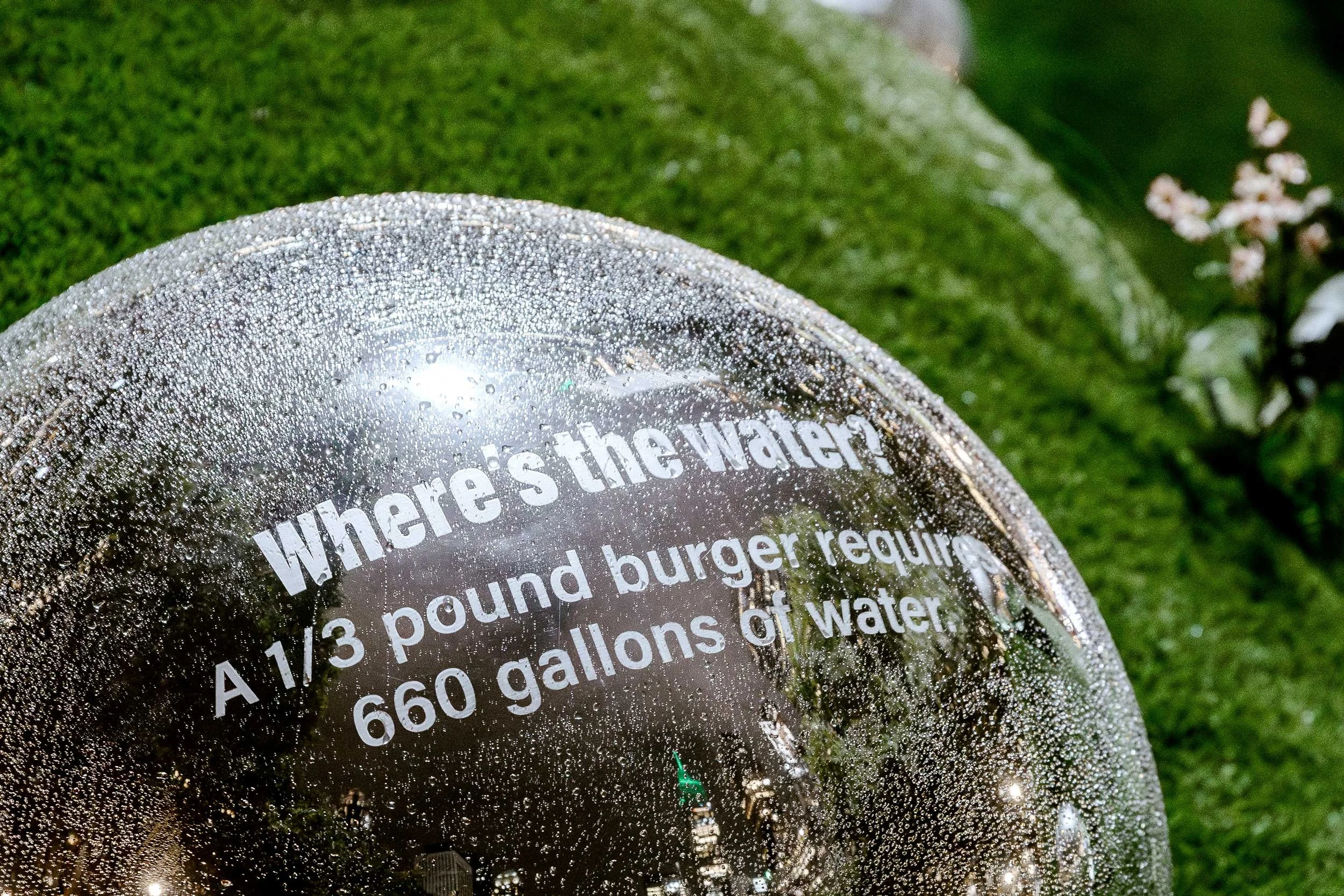 To raise awareness about global water scarcity (affecting over 2 billion people and a projected 2030 crisis), we partnered with m ss ng p eces and director Annie Saunders. For Climate Week in Bryant Park, we created an immersive installation featuring large, mirrored 'water drops' displaying shocking statistics on the hidden water cost of everyday items, engaging tens of thousands with sound and motion-activated lighting.