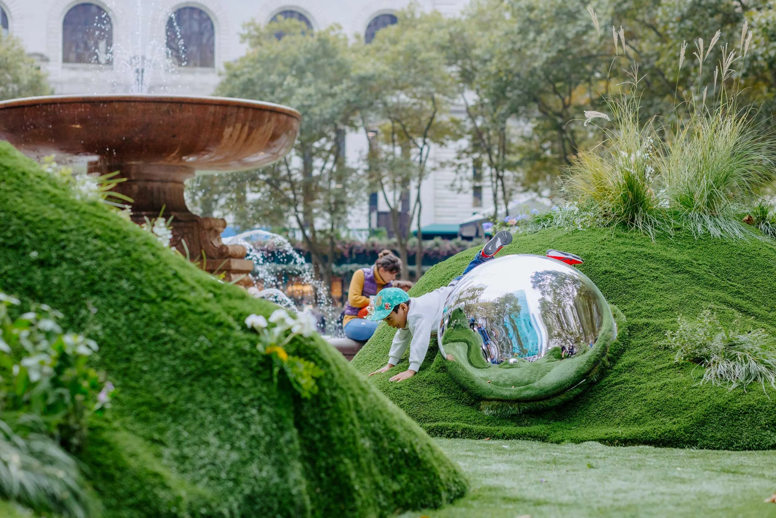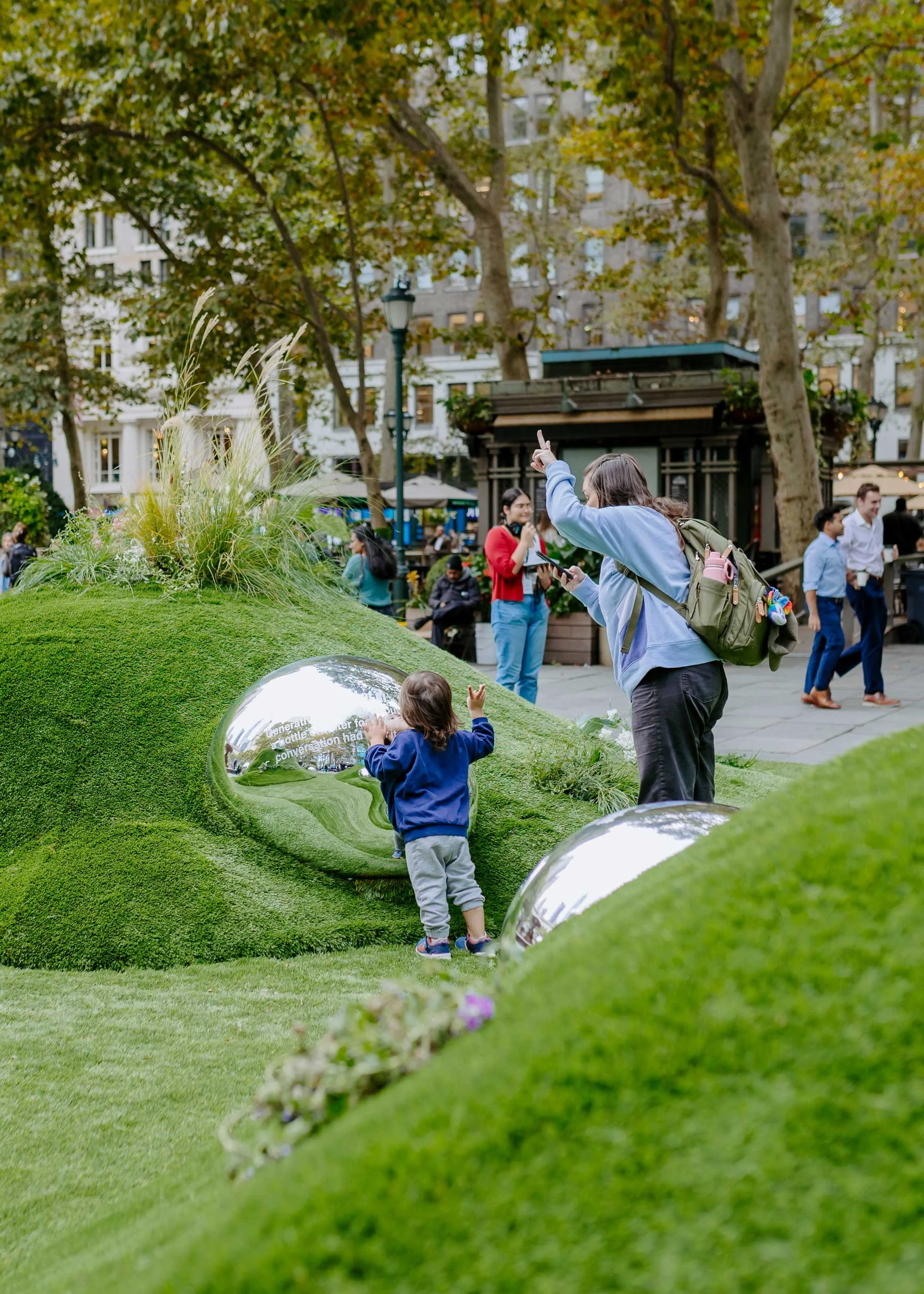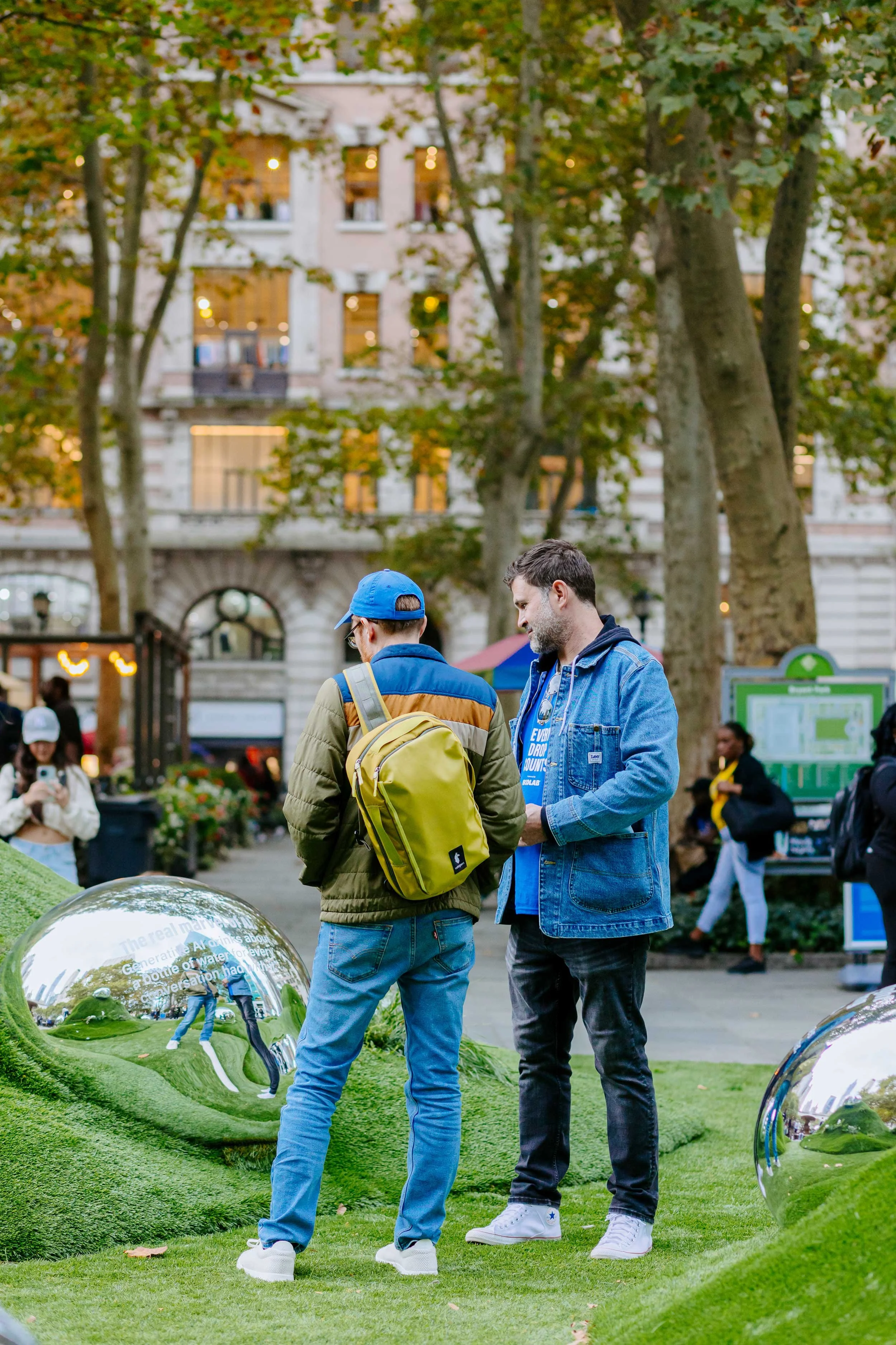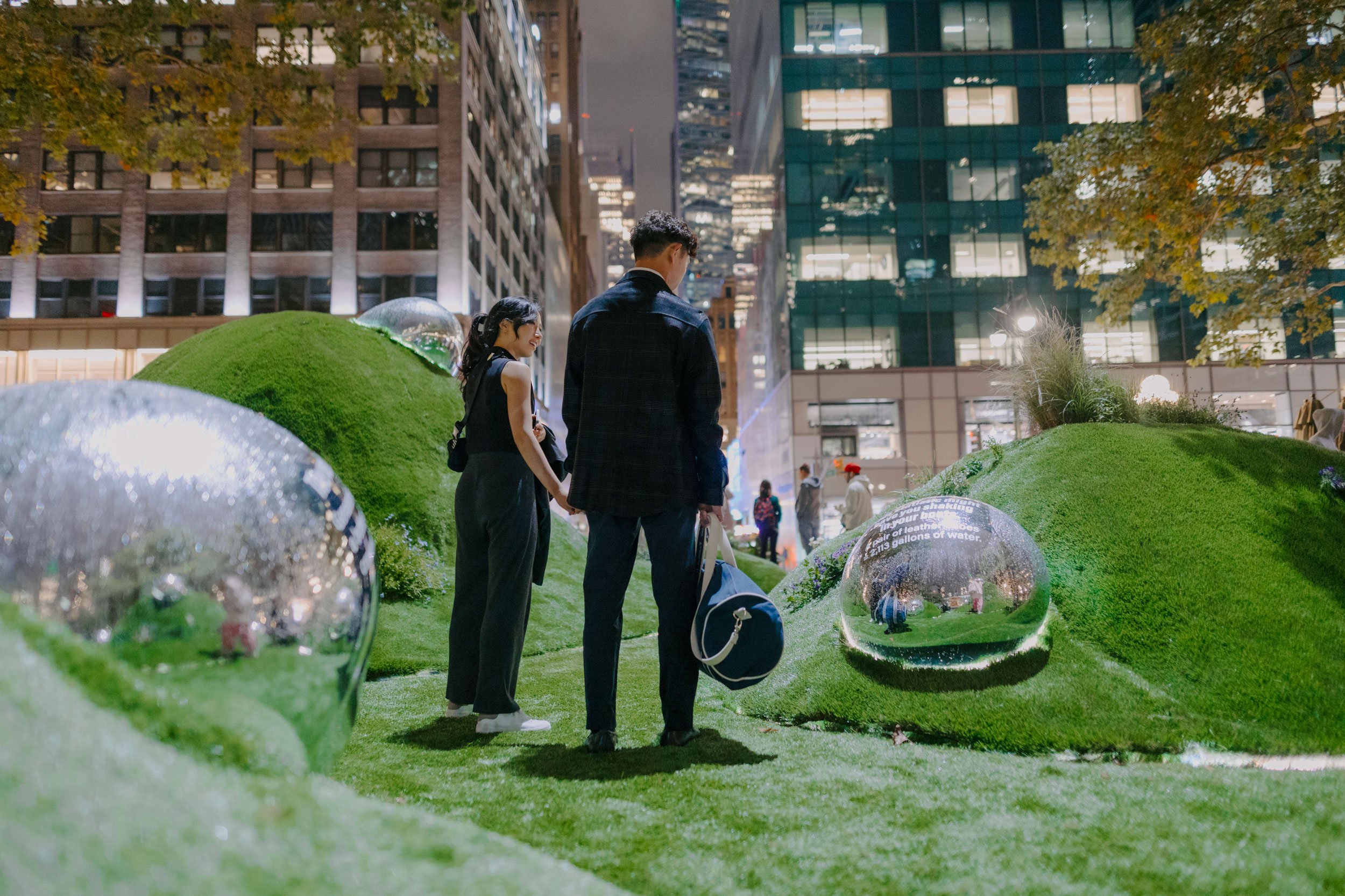 To raise awareness about global water scarcity (affecting over 2 billion people and a projected 2030 crisis), we partnered with m ss ng p eces and director Annie Saunders. For Climate Week in Bryant Park, we created an immersive installation featuring large, mirrored 'water drops' displaying shocking statistics on the hidden water cost of everyday items, engaging tens of thousands with sound and motion-activated lighting.