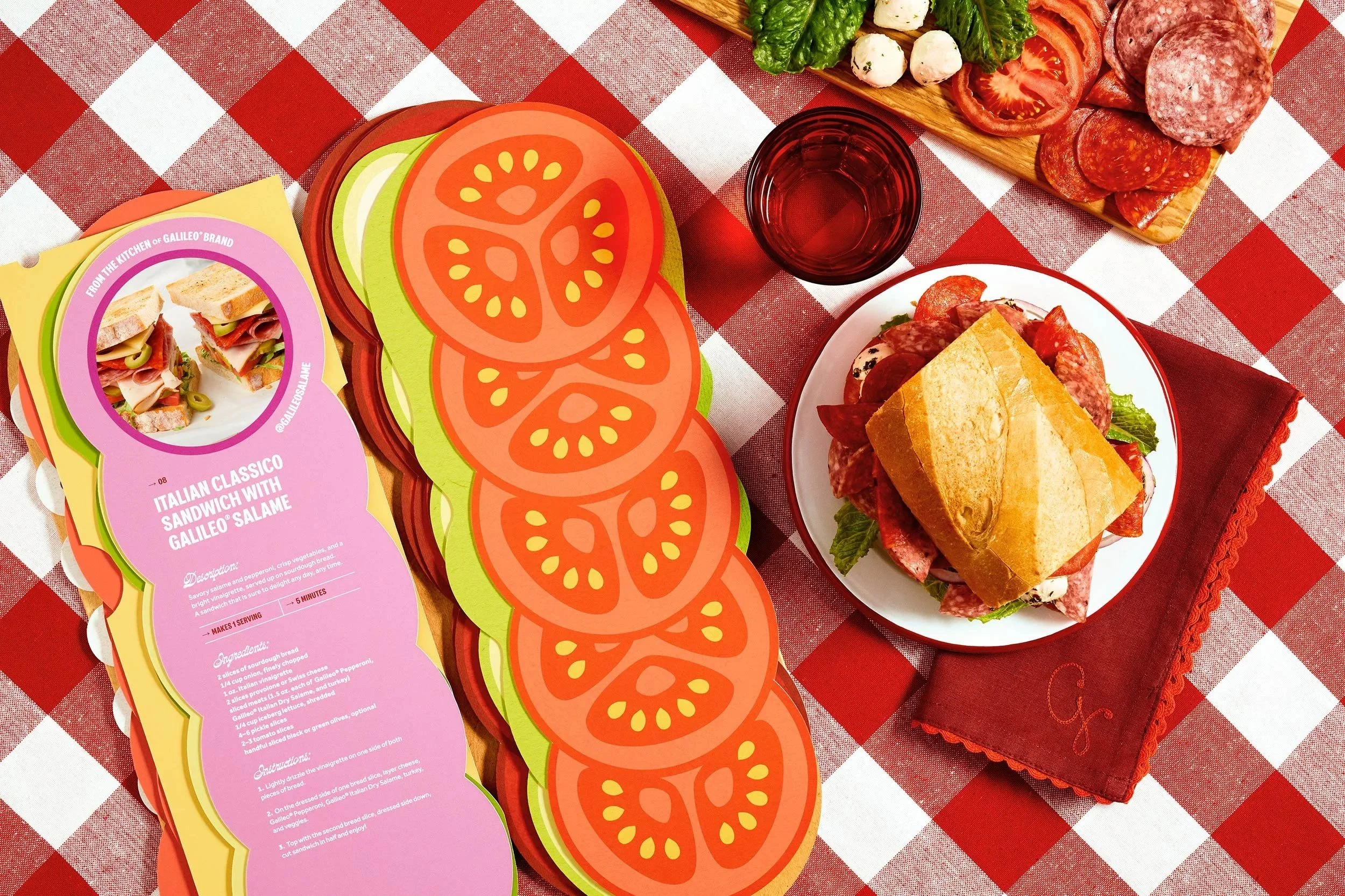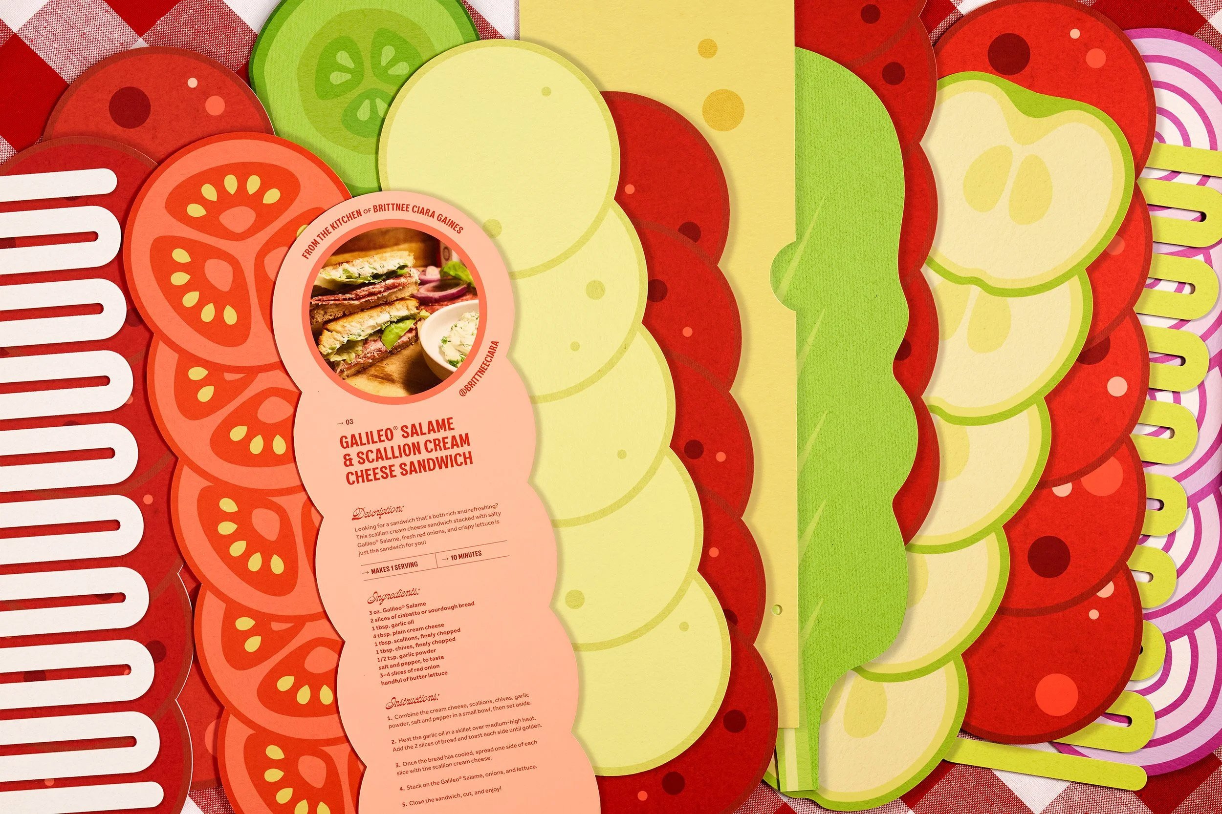 To help consumers battle the lunchtime sandwich rut, Galileo Salame partnered with brand influencers to create recipes for a Panini-sized cookbook. It was designed to measure 18 inches and came complete with a custom embroidered napkin and reusable baguette bag. Made of individual recipe cards shaped as classic sandwich ingredients and double as removable recipe cards, it inspires the Italian chef in all of us.