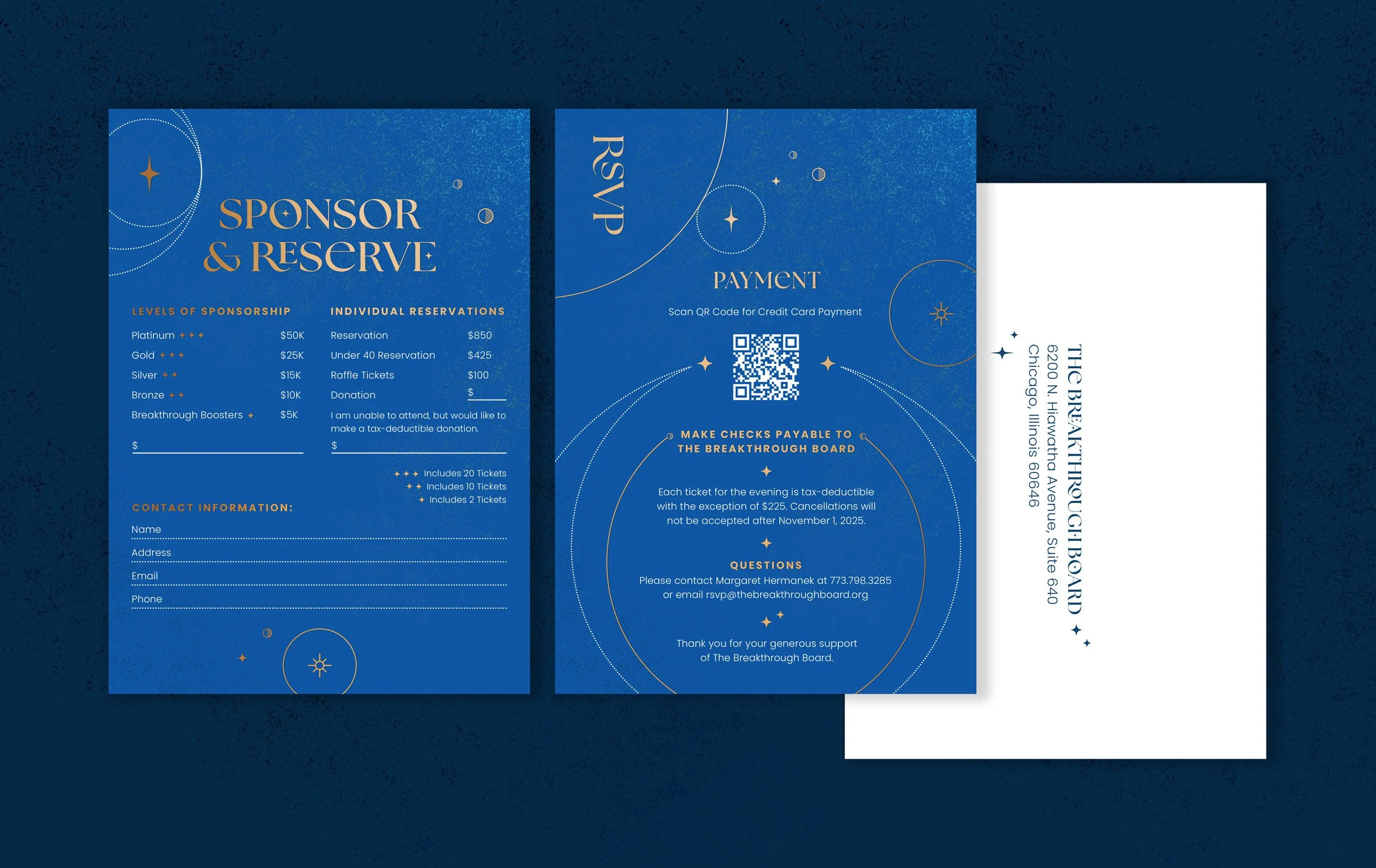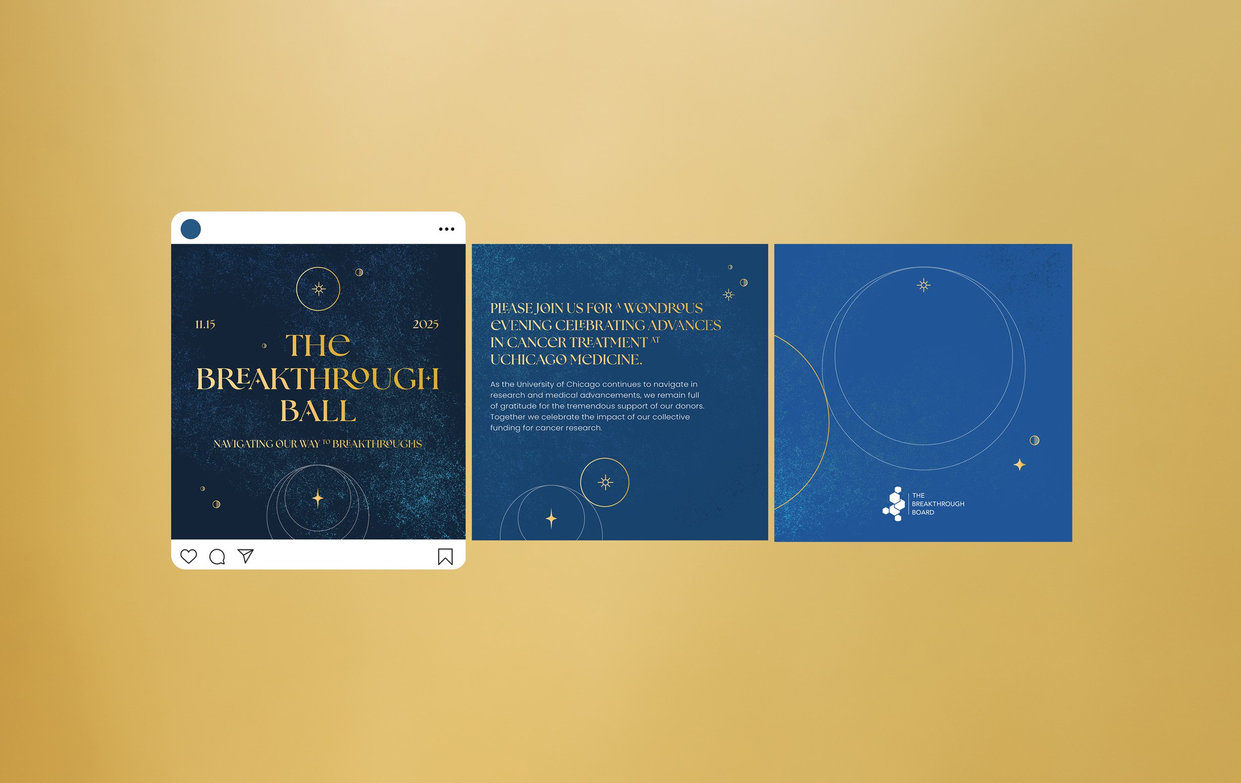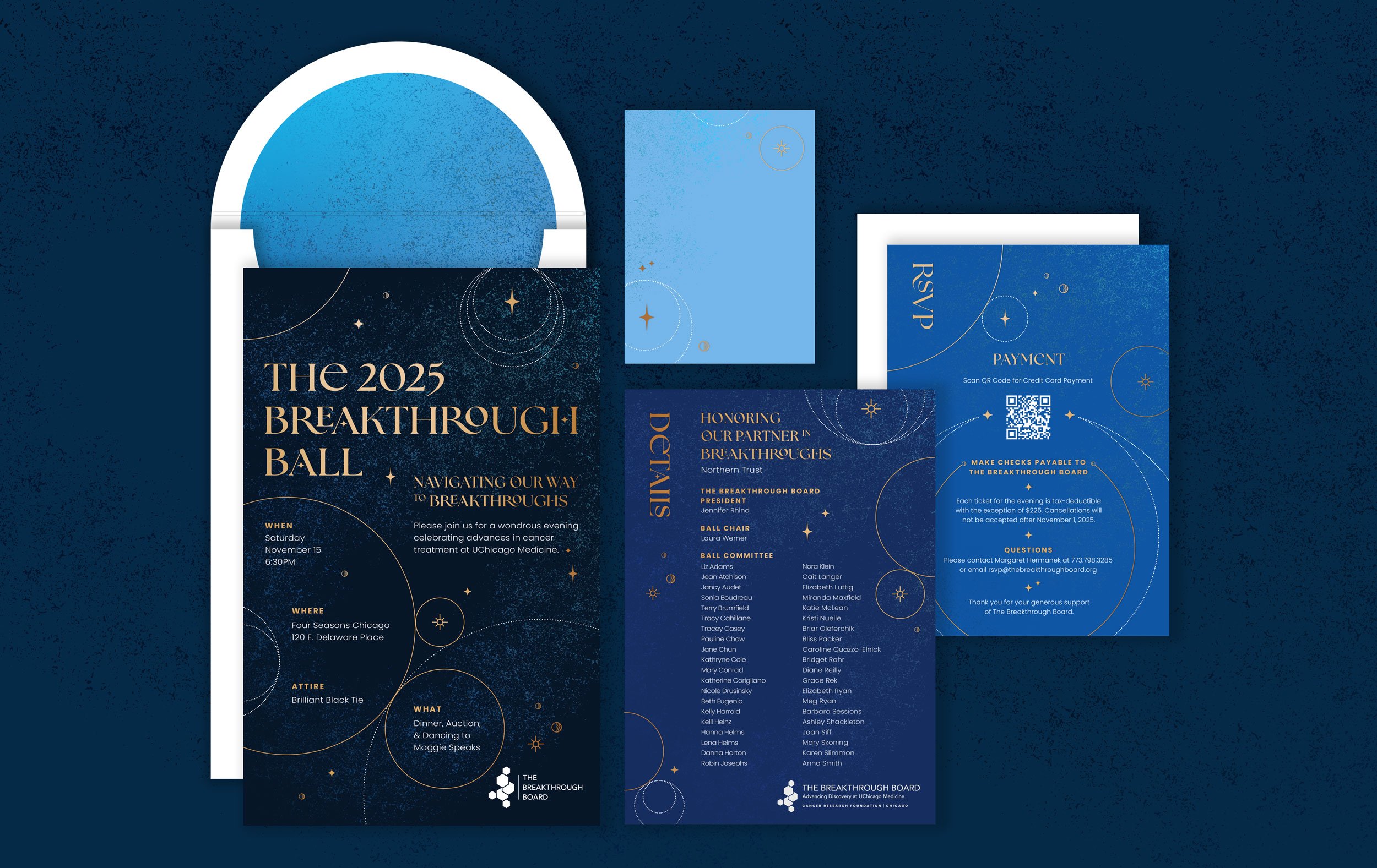I designed the invitation set, which was printed with gold foil and inspired by deep optimism, empowering us to embrace the unknown and collectively propel the future of medicine forward.