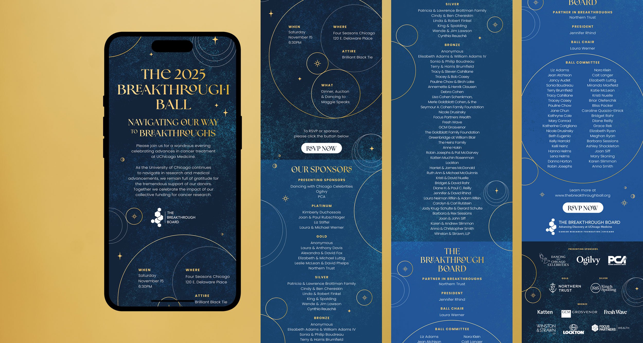 The Breakthrough Board raises funds to support breakthroughs in cancer research at UChicago Medicine by hosting annual gala events. Ogilvy presented the theme of ‘Wonder’ for the 2025 ball at the Four Seasons Hotel in Chicago. “Navigating Our Way to Breakthroughs,” showcased enchanting magic of the night sky. Like celestial explorers, we embarked on an evening of discovery, celebrating the boundless possibilities unlocked by gifted cancer researchers. Their dedicated quest to unravel cancer’s mysteries light our path.