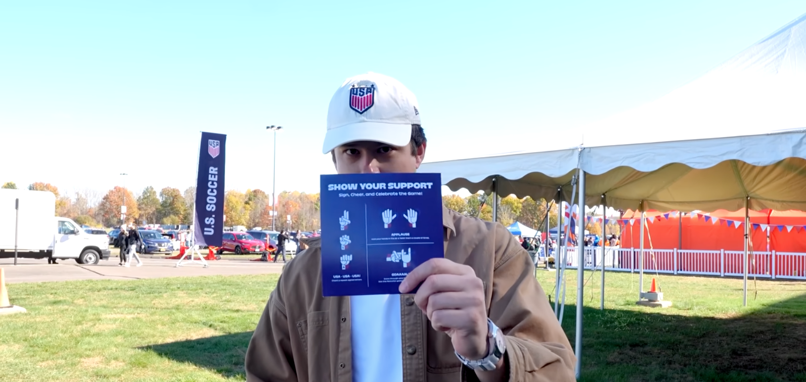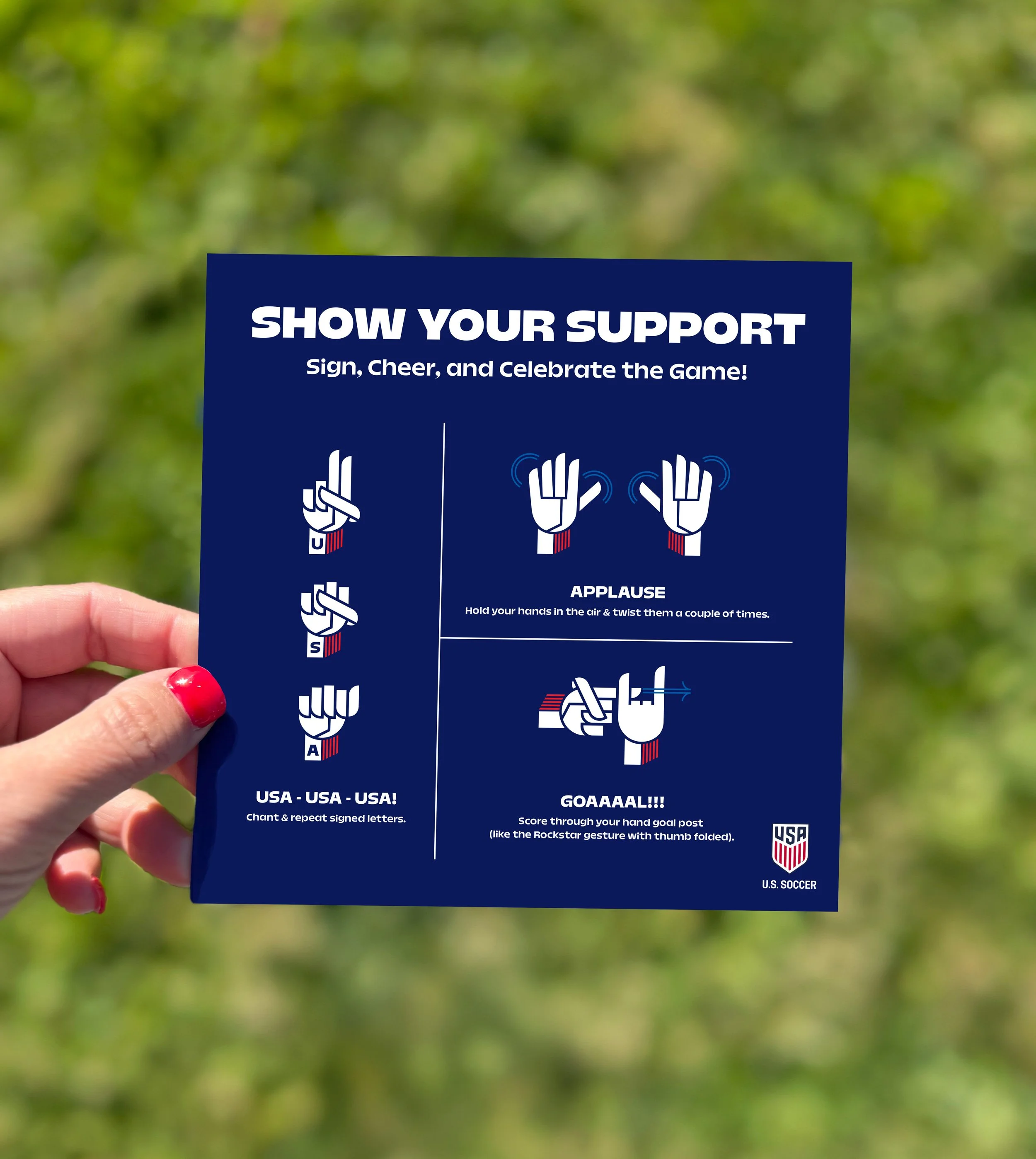 ASL fan cards handed out at the gate entrance to help learn signs for USA, Applause and GOAAAAL!!!